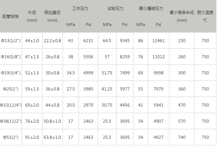 结构:以耐高温高压钢丝缠绕胶管为基体,外皮包覆纳米耐火涂料层、不锈钢丝编织层和阻燃层构成。 特点:高压、耐火、隔热,管体美观防腐蚀,抗静电、高耐磨、重量轻、耐高低温、低温下弯曲性能好、寿命长。 用途:油田井控作业,金属冶炼及化工行业等有热源或热辐射的高温环境。